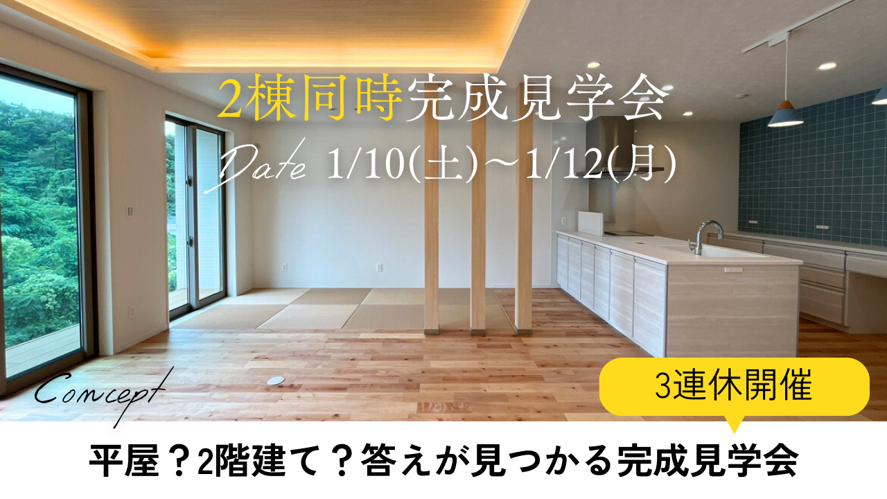 - 2026.01.051/10(土)~1/12(月)平屋?二階建て?答えが見つかる2棟同時完成見学会