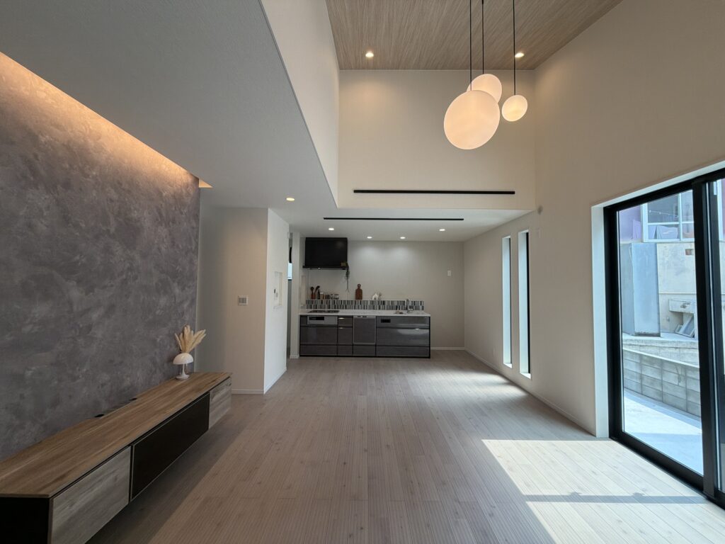 LDKは勾配天井や窓の配置の工夫により、実際の面積以上の開放感を感じられる設計です。