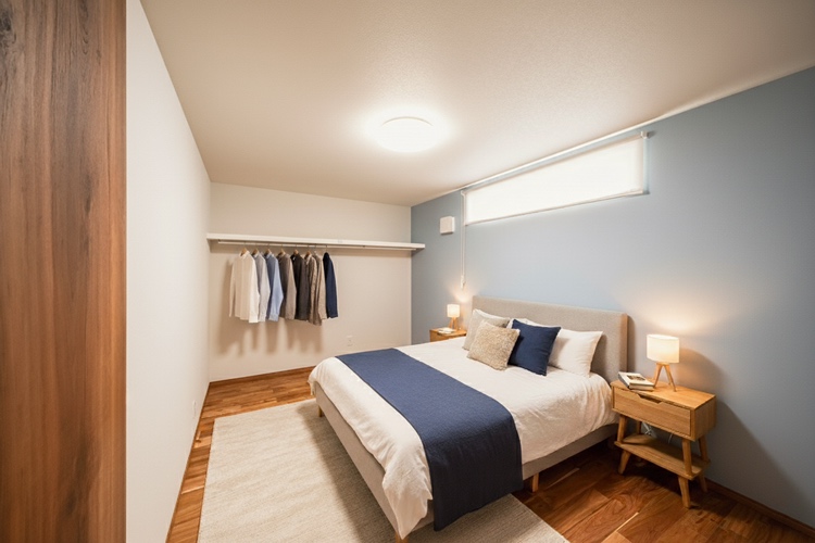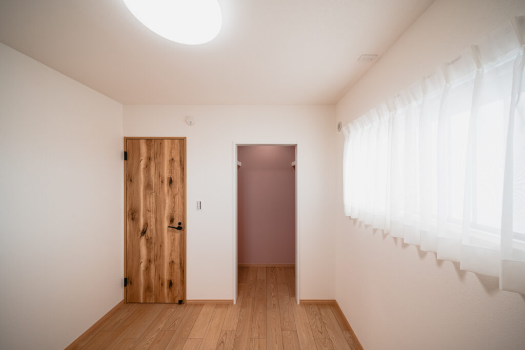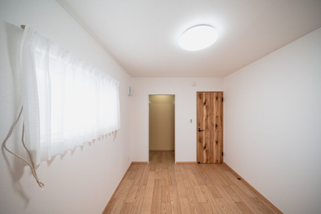 7.5帖の寝室。壁一面にオープンクローゼットを設けました。