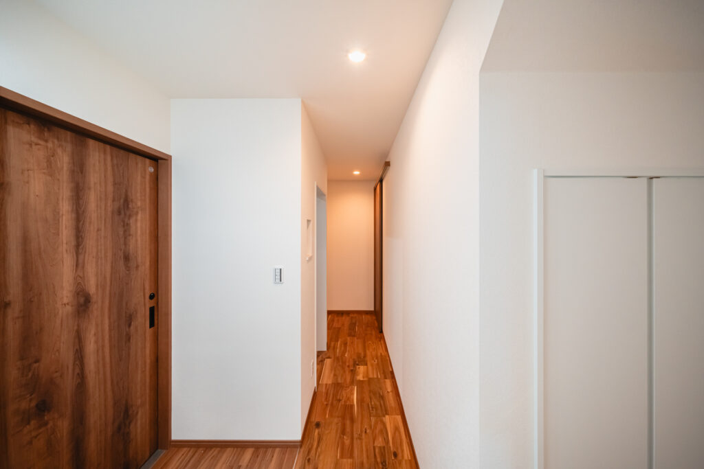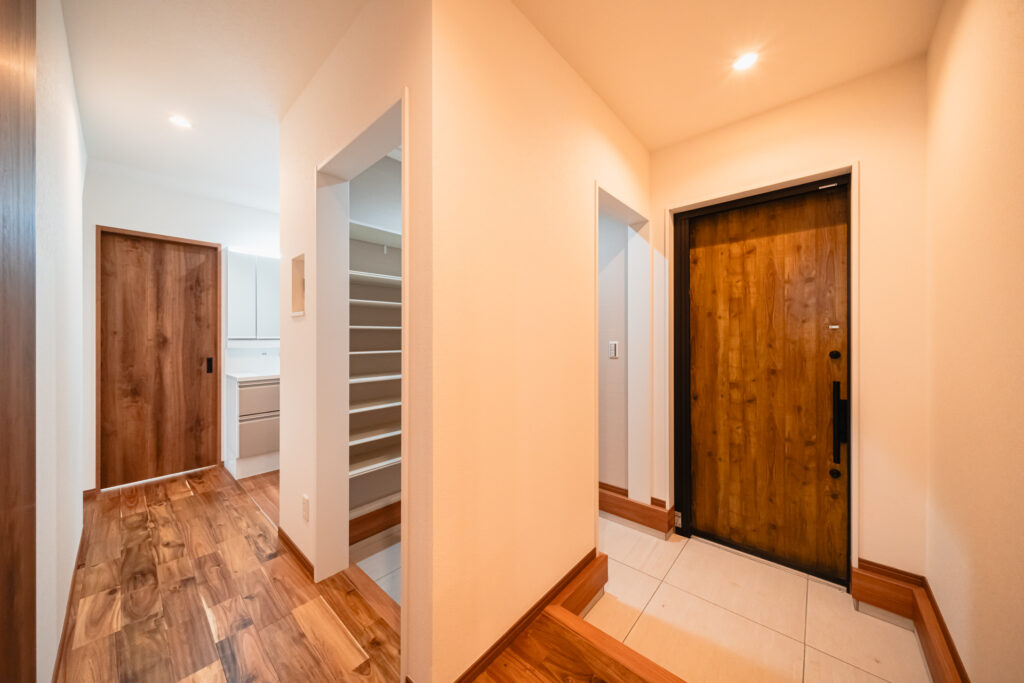 家に帰ってからの動きがスムーズになるように、回遊動線を取り入れた間取りに。玄関からリビング、キッチン、水回りへと自然に行き来できるので家事や支度も楽々です。