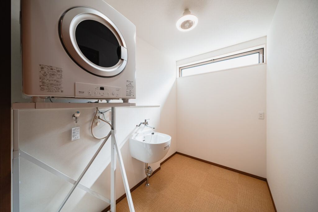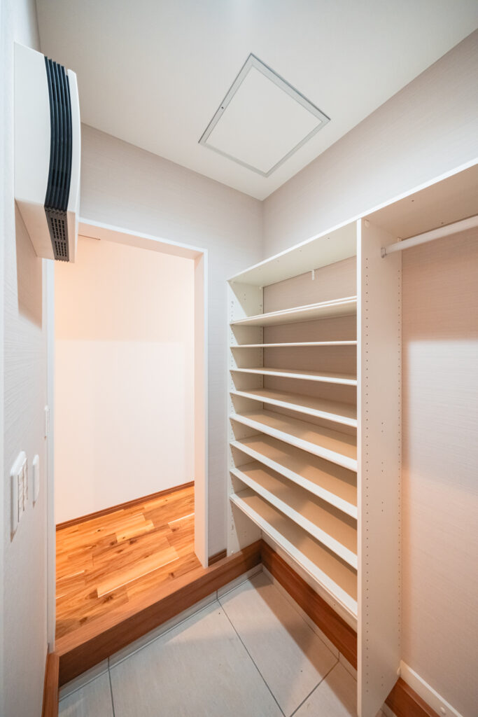 ランドリールームは3帖と広めに設計。持ち込みの収納棚を置く予定で、洗濯から収納、又、身支度まで一部屋で完結します◎