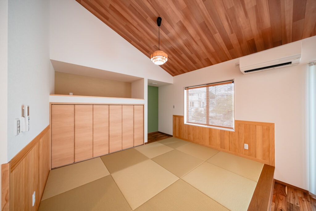 畳スペースは小上がりを採用。和の雰囲気感じるクロス選びで落ち着く空間となりました。