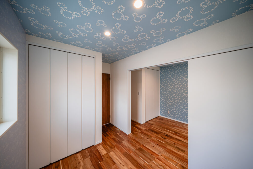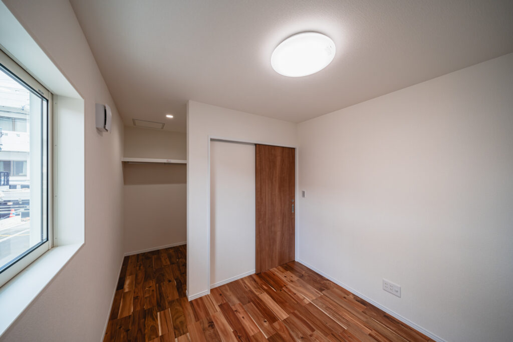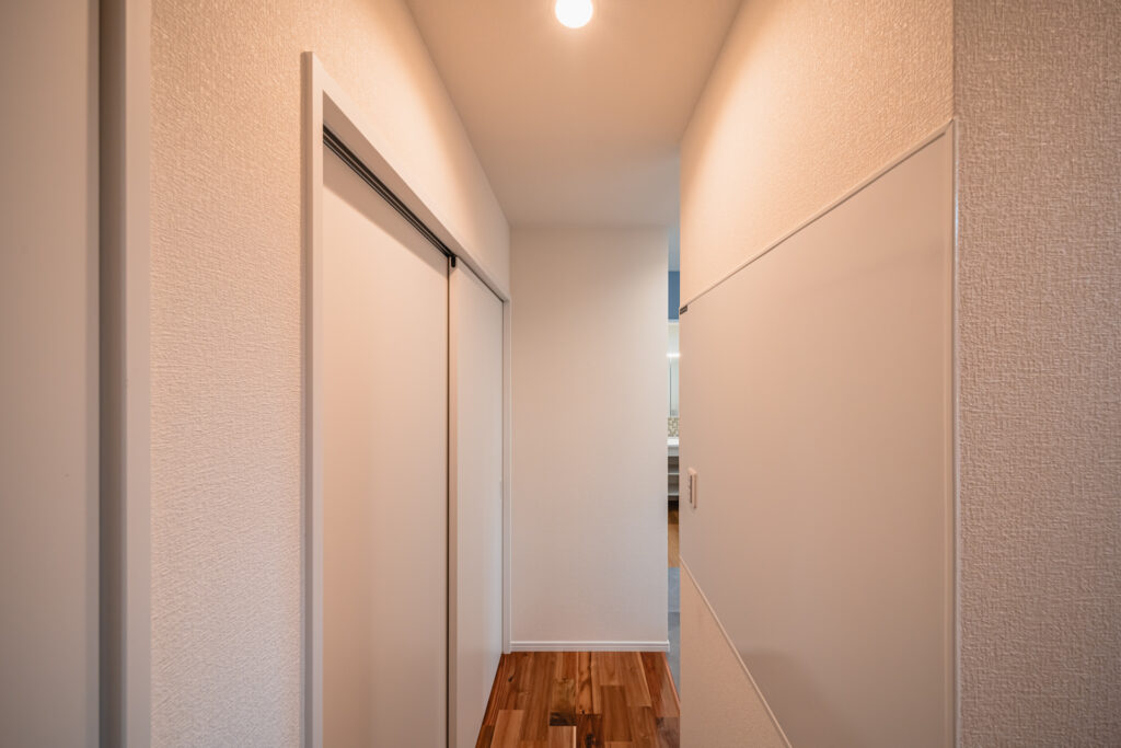 4.5帖の寝室には2帖のウォークインクローゼットを確保。入り口はすっきりとオープンにしています。