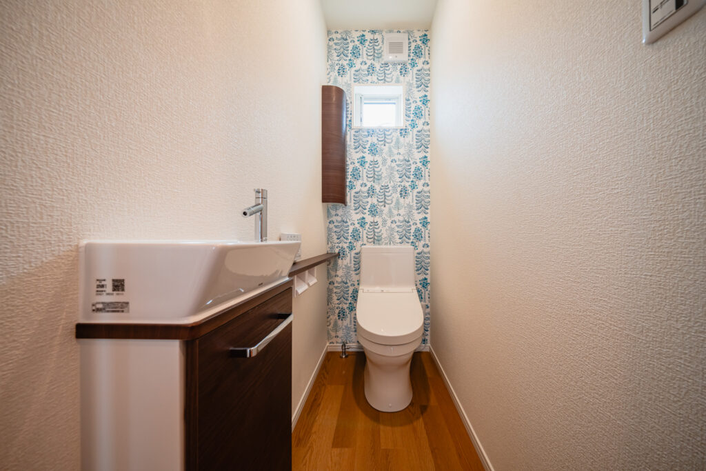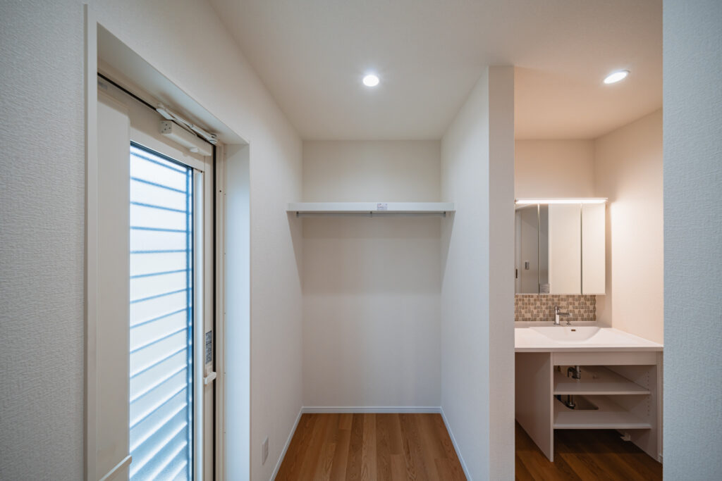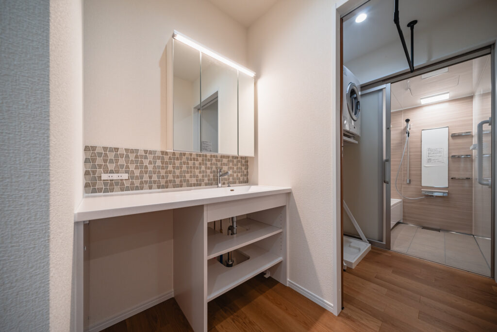水回り設備を一か所に集約。洗面室と脱衣室は分けているので、プライバシーもしっかり確保しています。