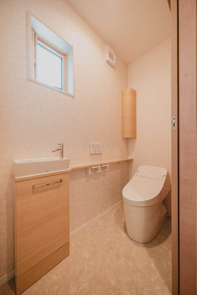 玄関は親・子世帯と共有し、ほど良い距離感を保ちつつ安心して暮らせる二世帯計画に。生活リズムが違っても互いに気を遣いすぎず、必要なときはすぐそばで寄り添える、やさしい住まいの形です。