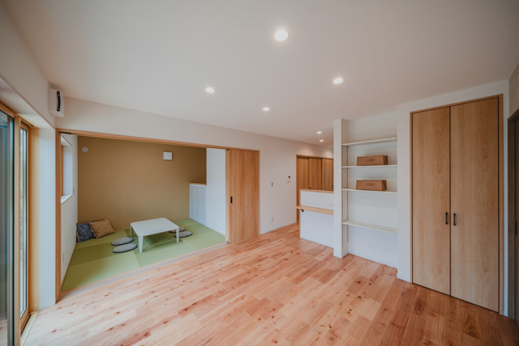 隣接する4.5帖の和室は、畳の心地よさと落ち着きが感じられる癒しの空間。扉を開ければLDKと一体で広々と使え、閉じれば来客対応やお昼寝など、自分のペースで過ごせる便利な個室になります。