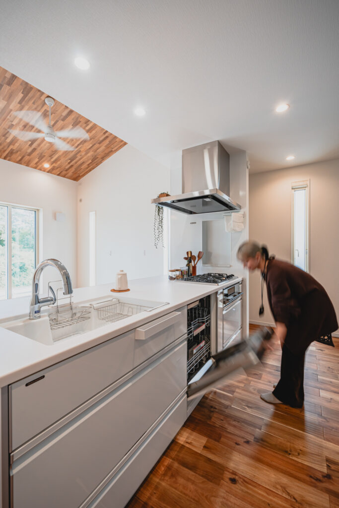 キッチンにはボッシュの食洗機を採用。大容量で使い勝手がよく、毎日の後片付けの負担を軽減してくれます。