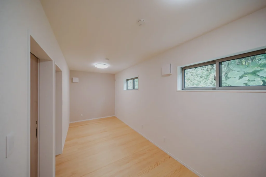 リビングから直接アクセスできる2つの子ども部屋。あえてコンパクトな設計にすることで、リビングで家族と過ごす時間を大切にしつつ、自立心も育む空間となりました。