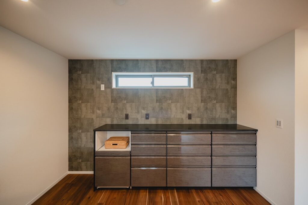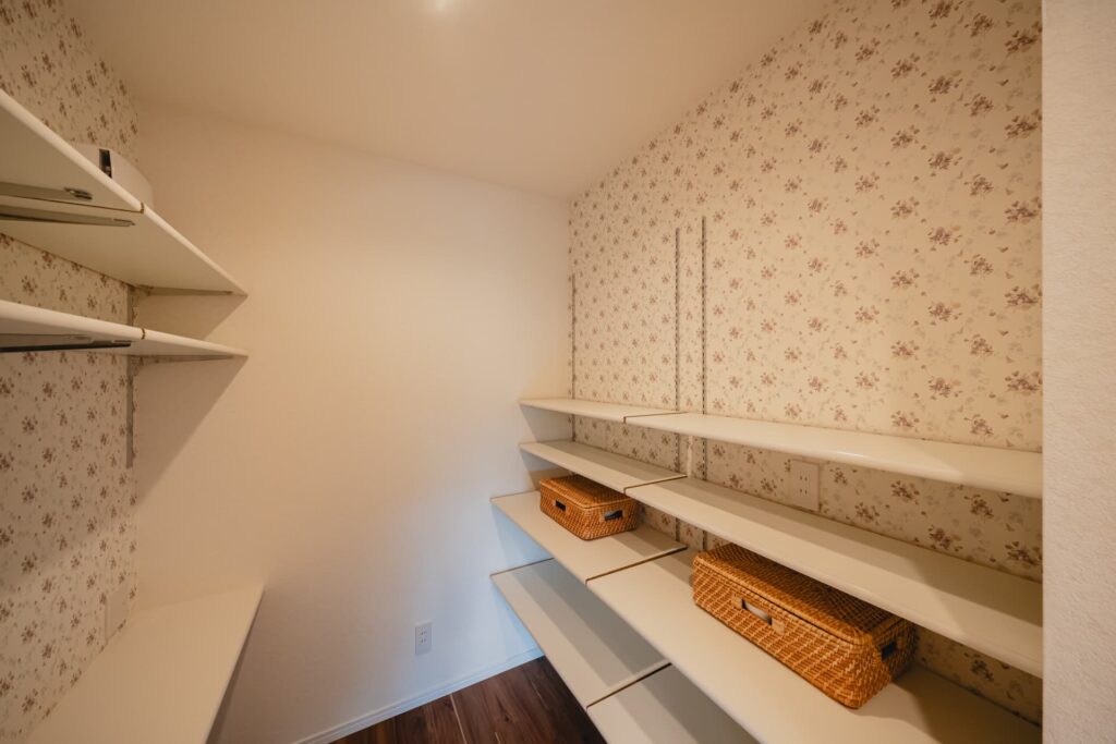 キッチンのすぐ隣にはパントリーを設けました。常にスッキリとした住空間を保つことができます。
