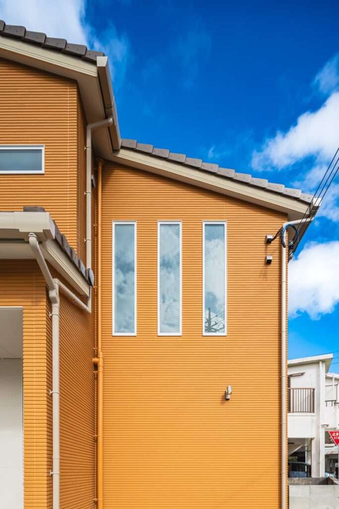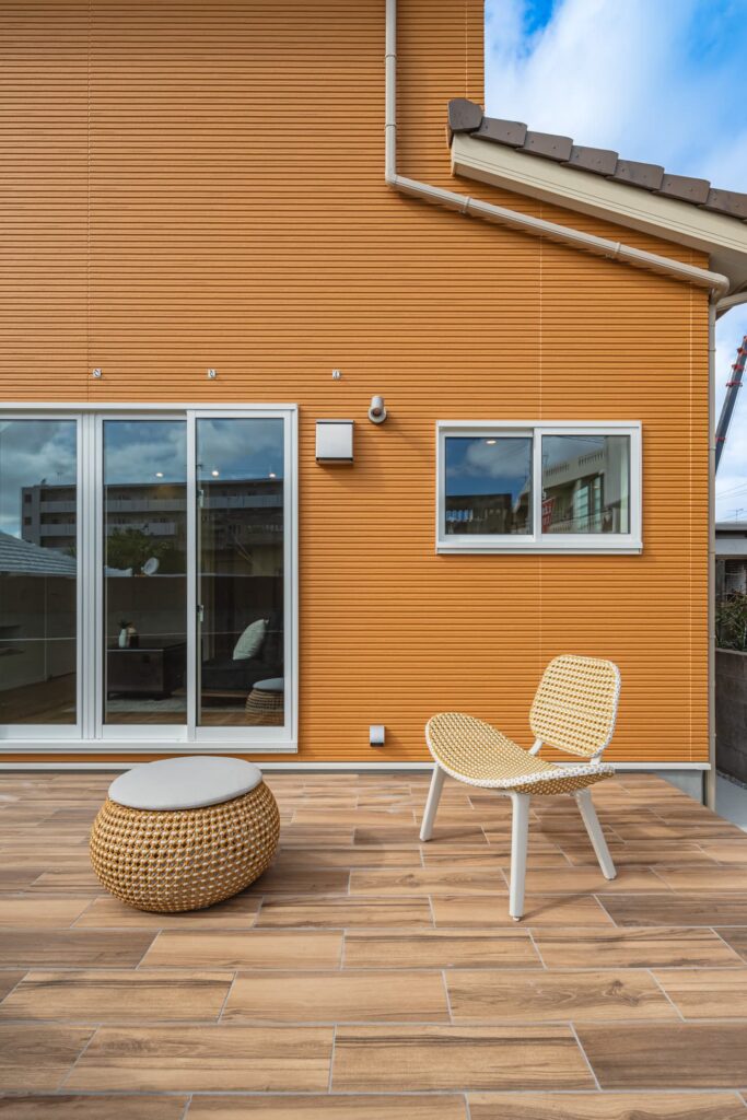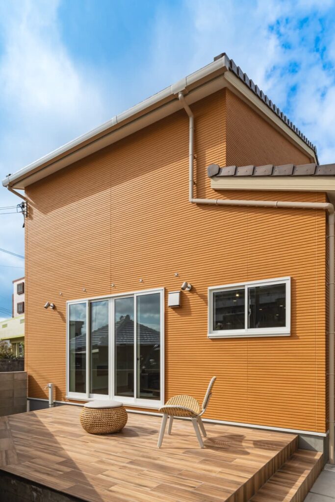 今回ご紹介するのは、鮮やかなブルーの空に美しく映える、オレンジとナチュラルのコントラストが印象的なお住まいです。